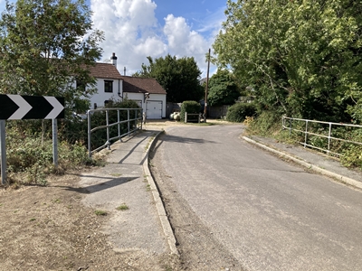 via the bridge over Sopley Brook.