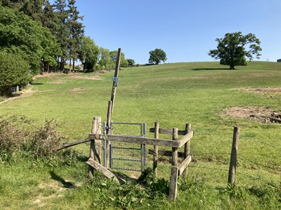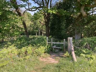 cross a stile into woodland.