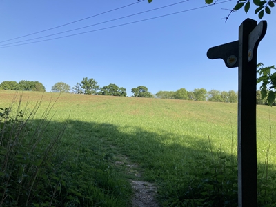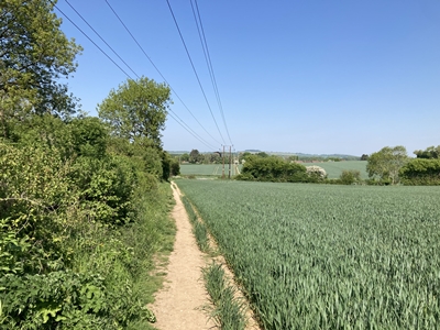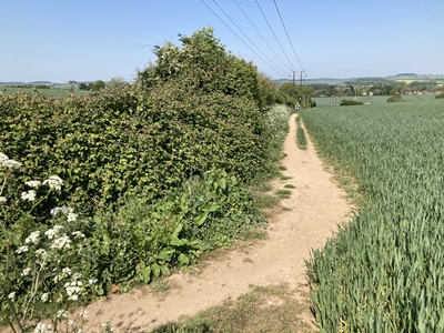 the path turns left to cross the field.