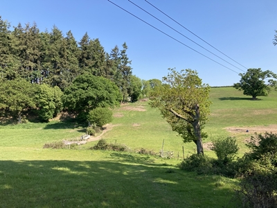 directly ahead up the next field.