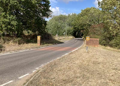 onto the access road to Sopley Park.