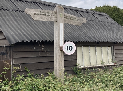 Signpost at entrance of track to Densome Wood