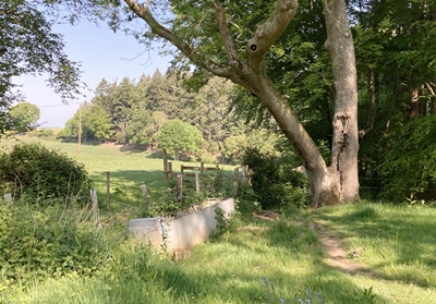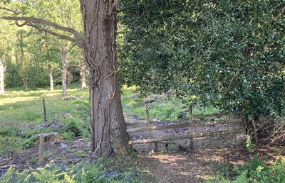 cross a stile into woodland.