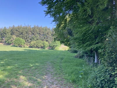 directly ahead up the next field.