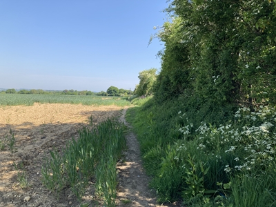 bears left to hug the hedgeline.