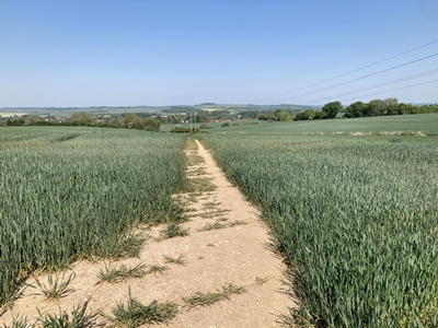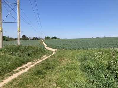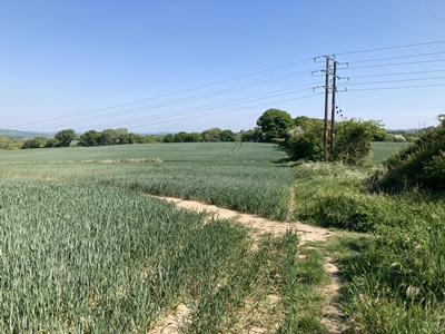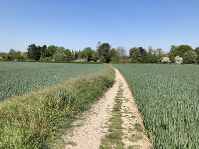 the path turns left to cross the field.